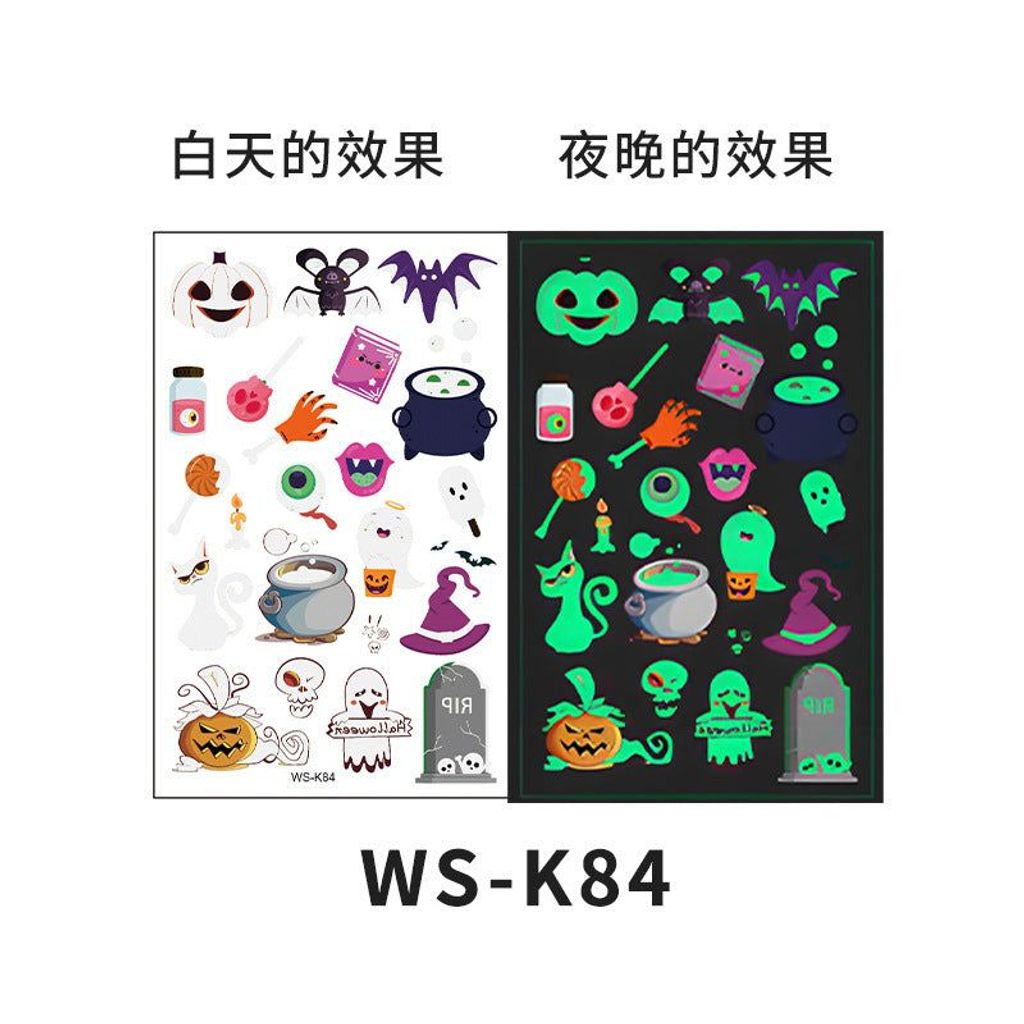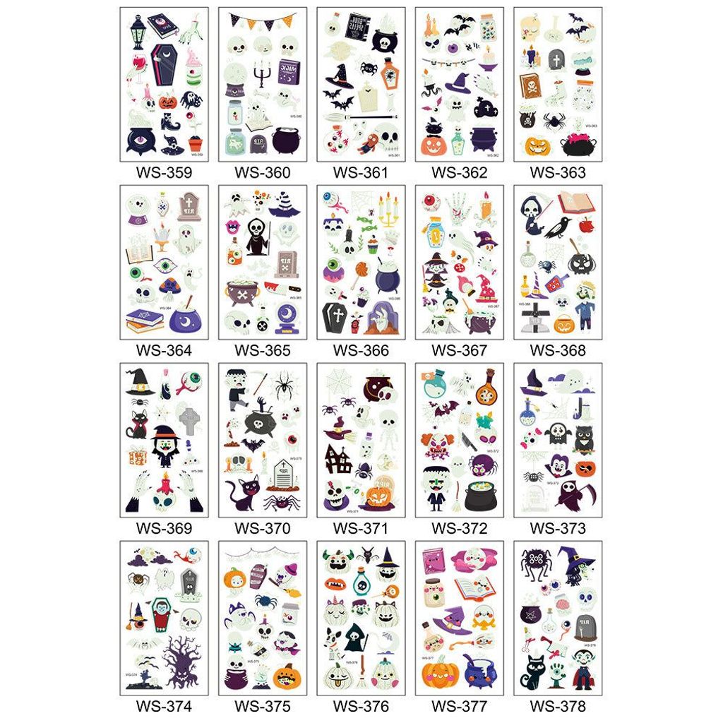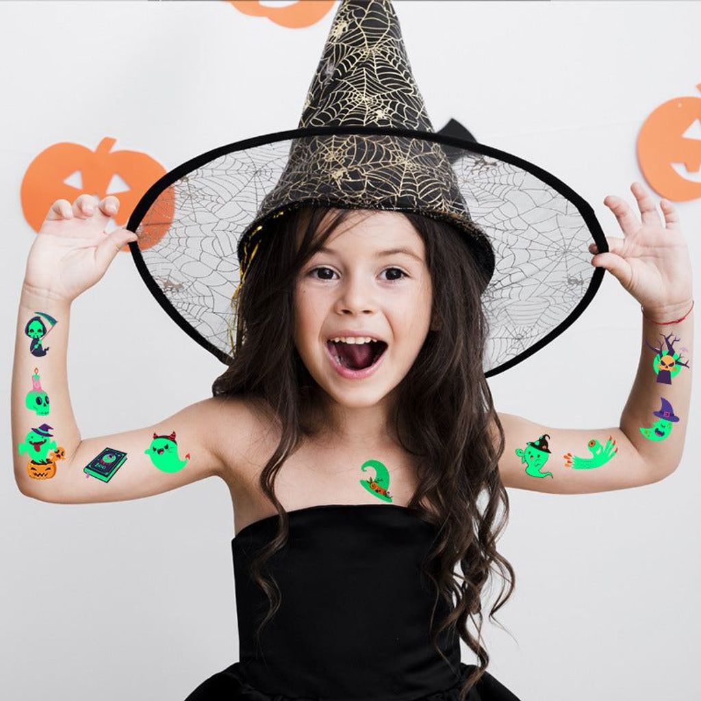 Cartoon Halloween glow-in-the-dark temporary tattoos, waterproof and sweat-resistant, long-lasting green stickers, glow-in-the-dark temporary tattoos for children's faces.