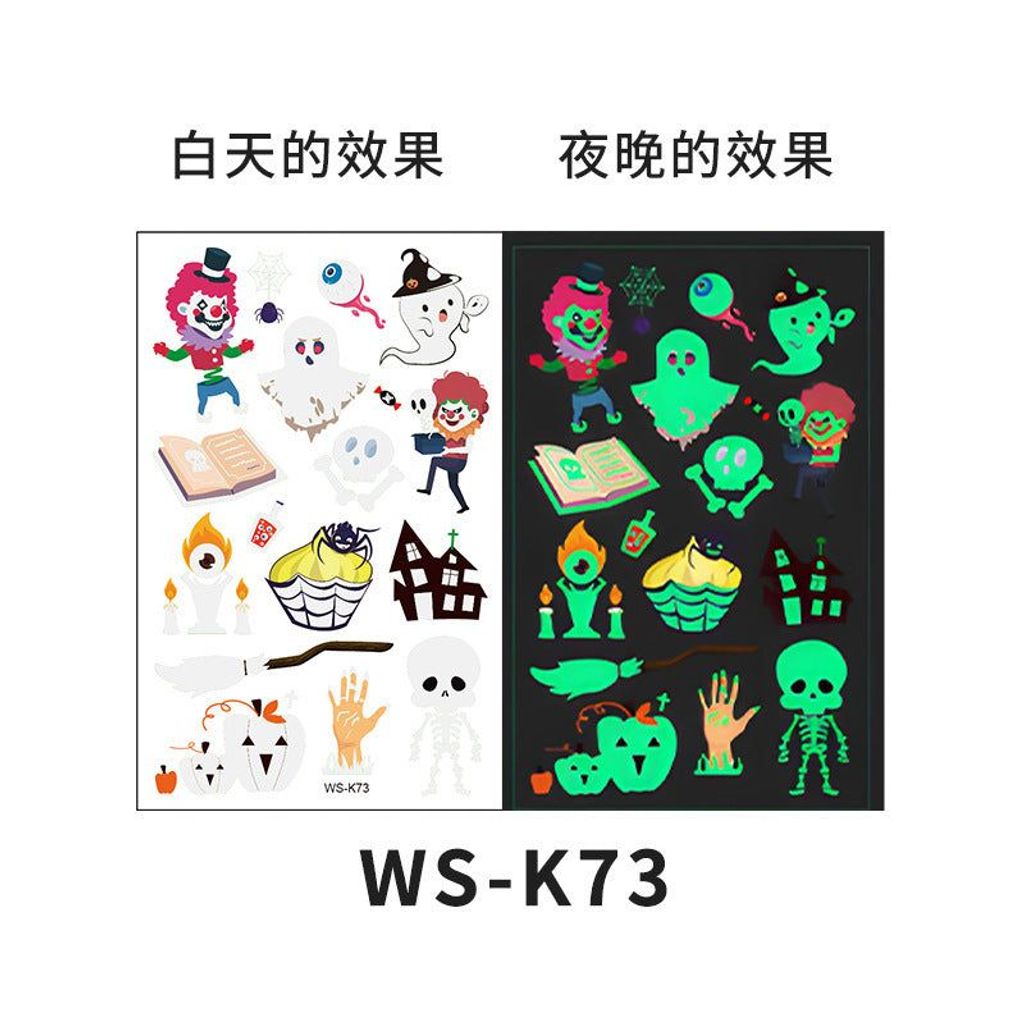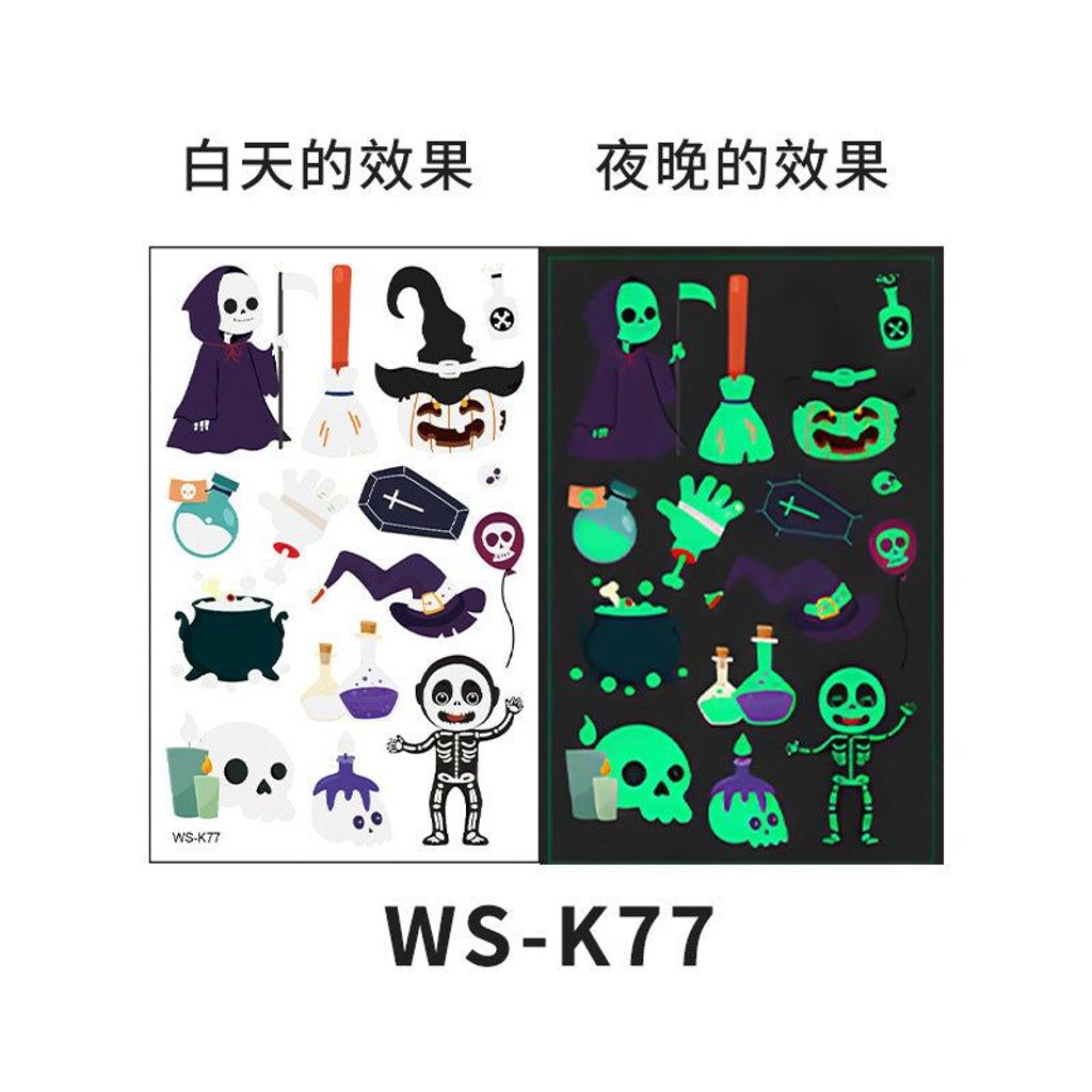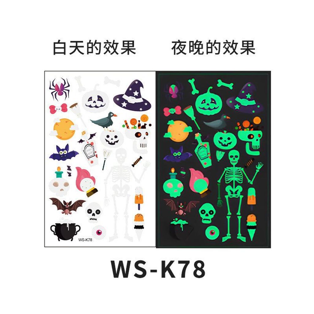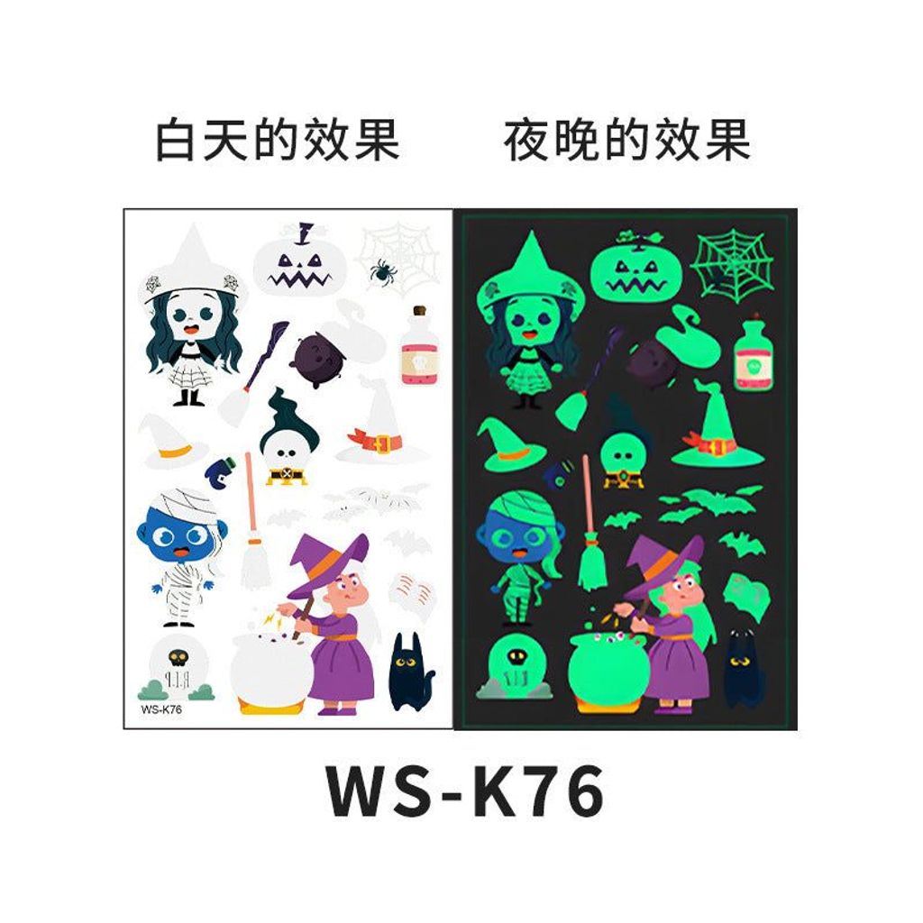 Cartoon Halloween glow-in-the-dark temporary tattoos, waterproof and sweat-resistant, long-lasting green stickers, glow-in-the-dark temporary tattoos for children's faces.