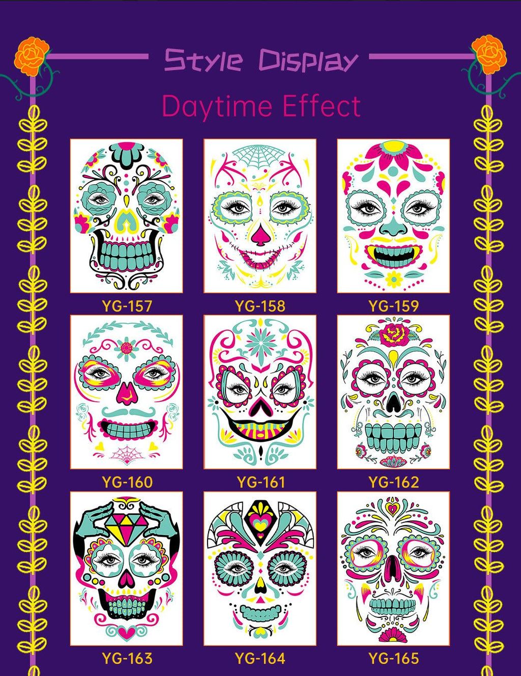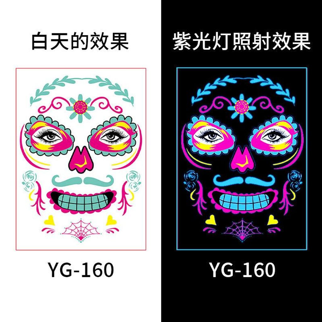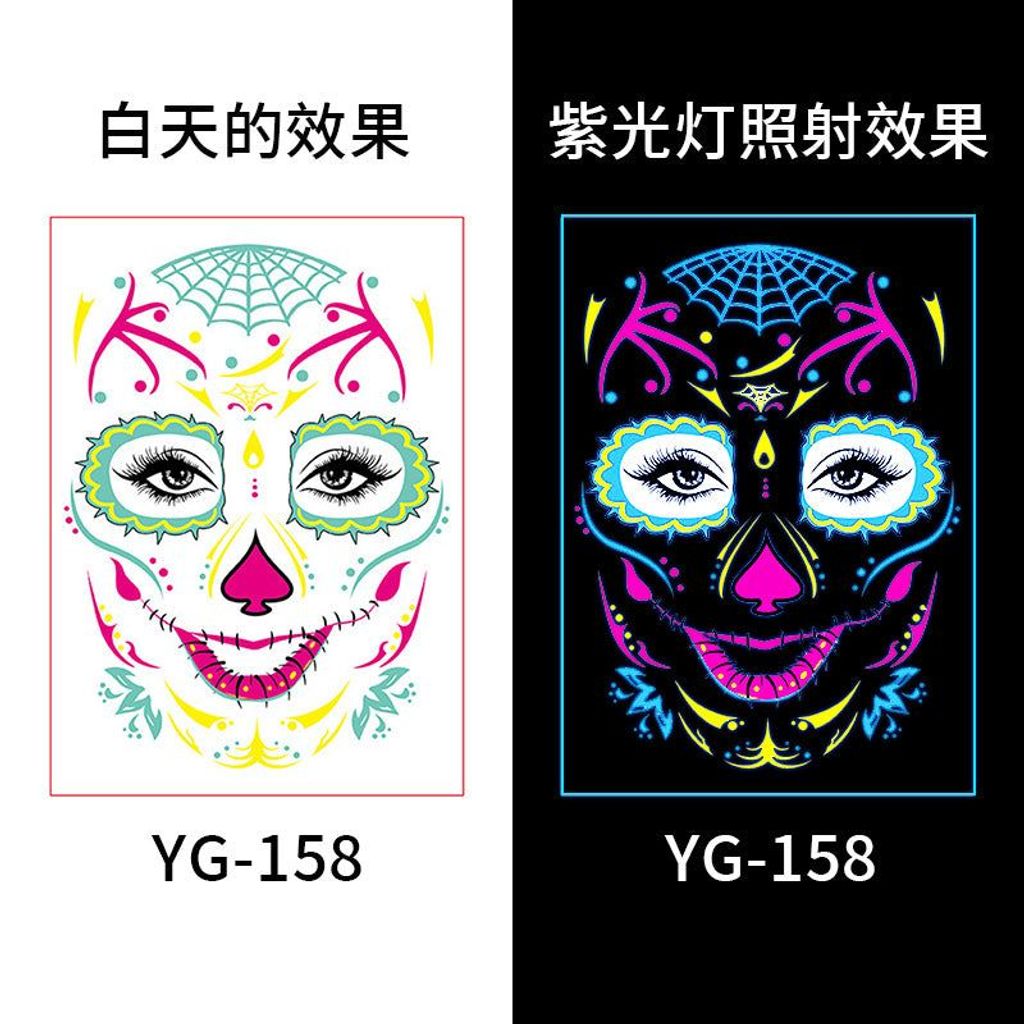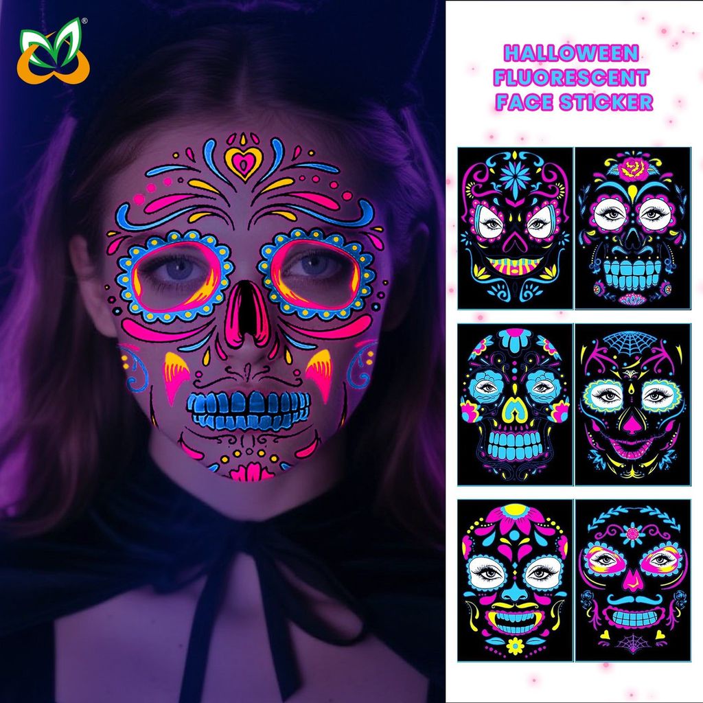 European And American Hot Selling Halloween Fluorescent Tattoo Stickers Face Stickers Masquerade Neon Face Decorative Tattoo Stickers Night light