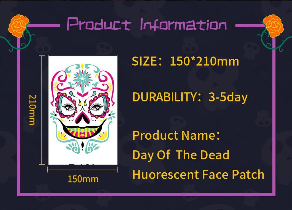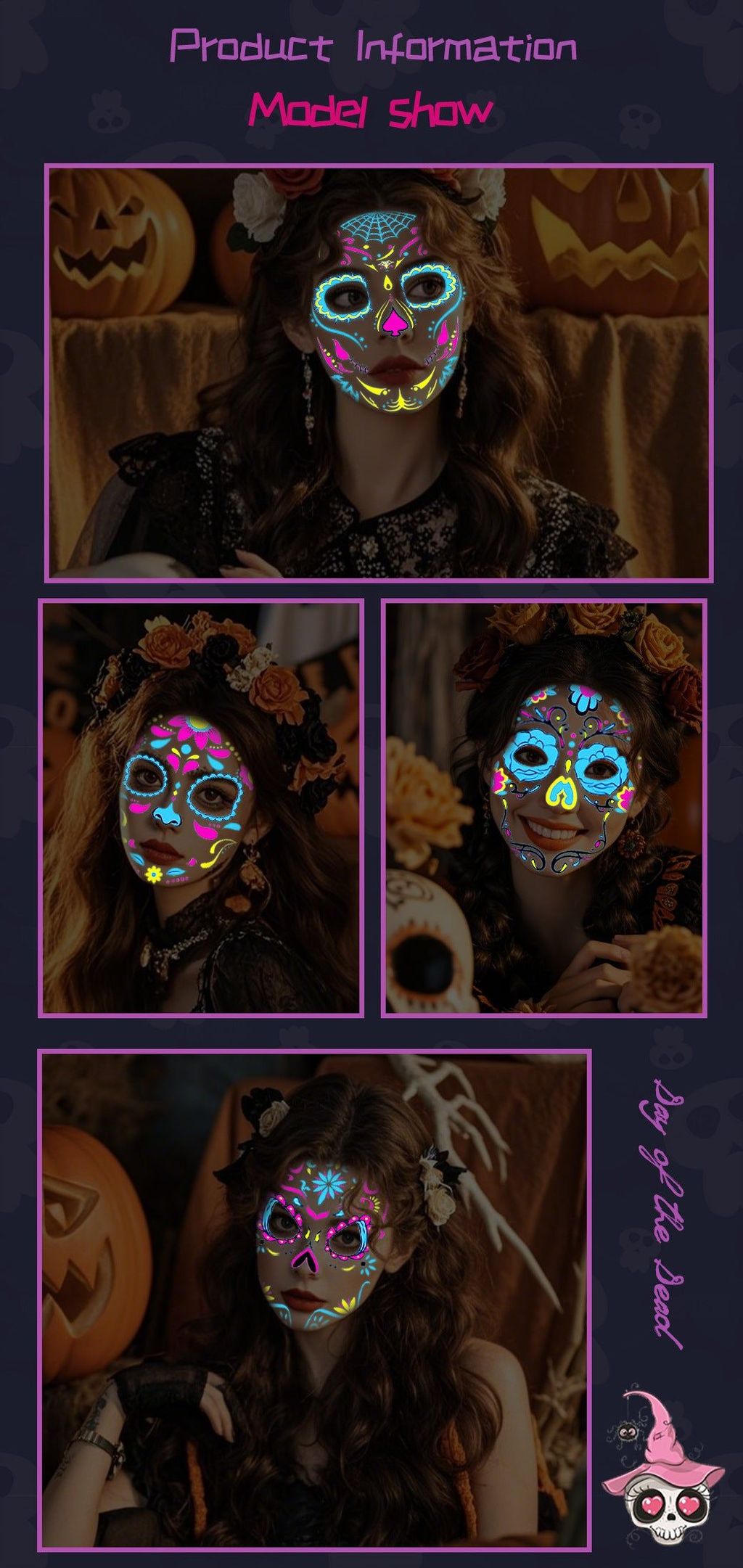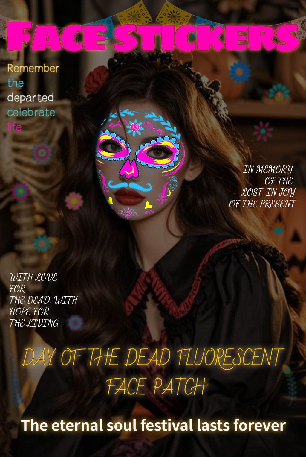 European And American Hot Selling Halloween Fluorescent Tattoo Stickers Face Stickers Masquerade Neon Face Decorative Tattoo Stickers Night light