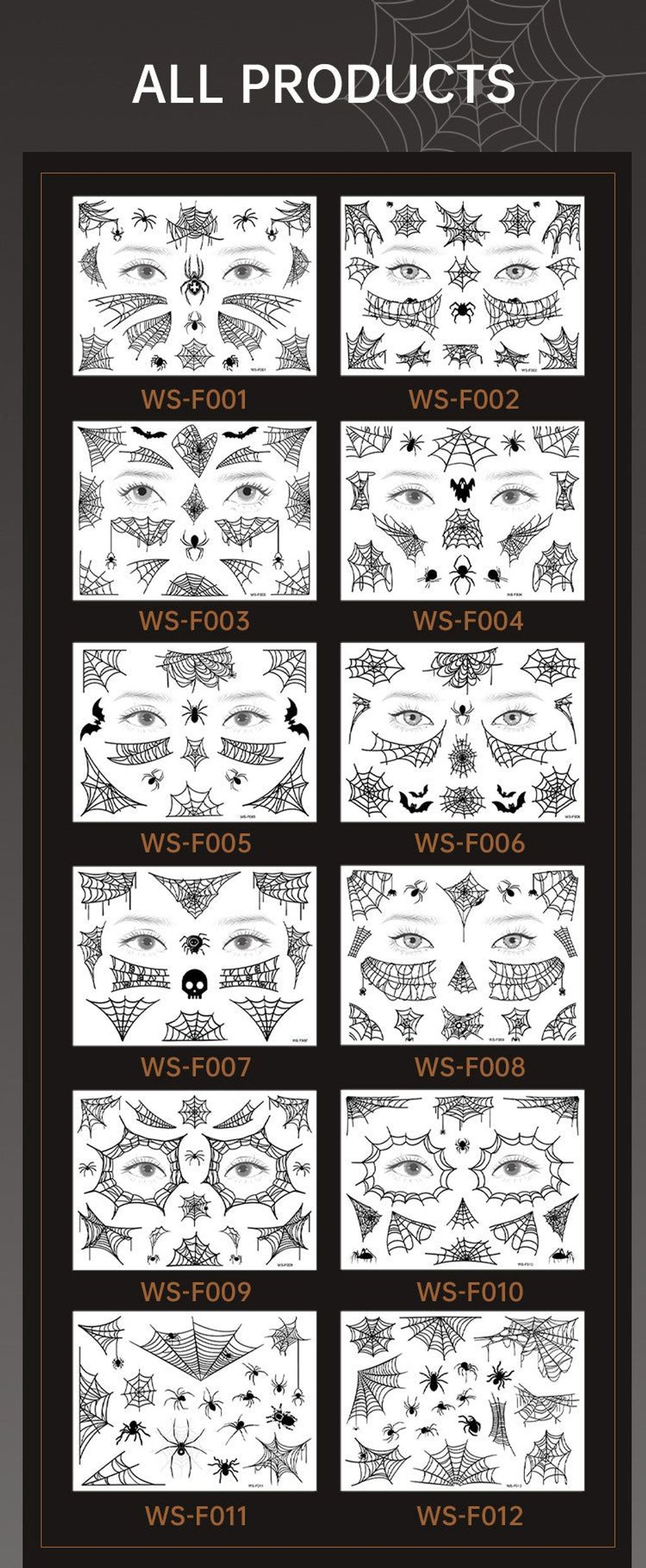 Halloween Spider Series Tattoo Stickers Ghost Festival Party Makeup Stickers Halloween Makeup Waterproof Dark