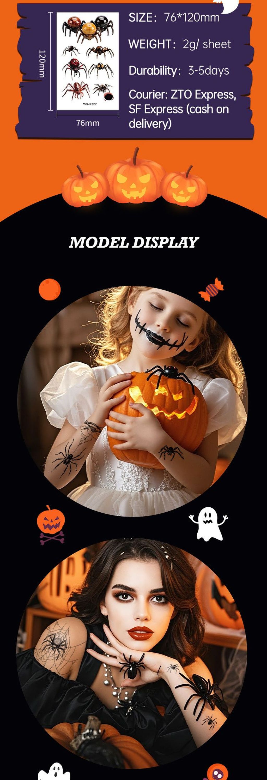 New 3D Spider Tattoo Personality High Sense Men's And Women's Arm Abdomen Clavicle Funny Tattoo Sticker Halloween