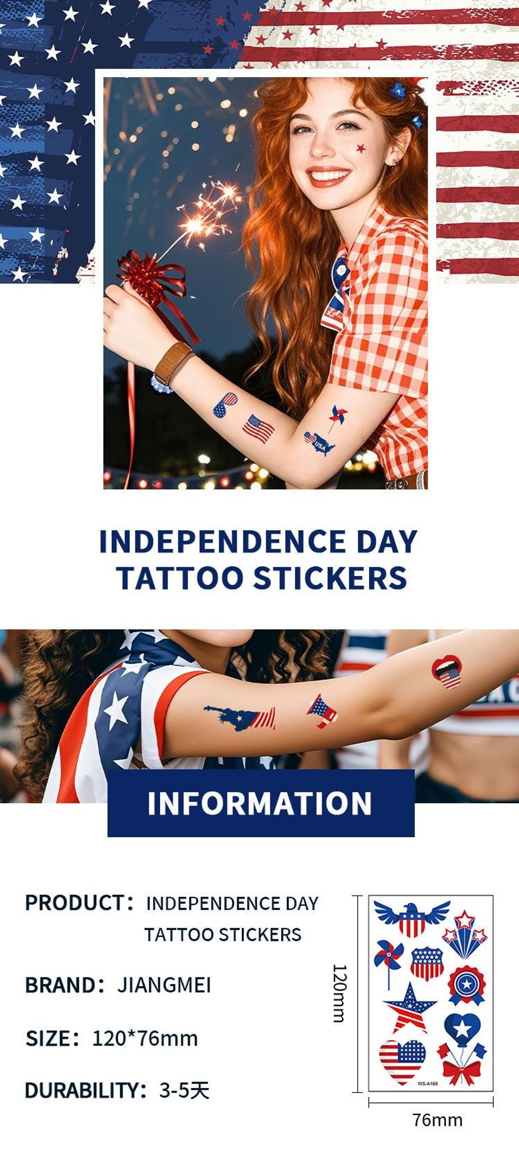 New American Independence Day Tattoo Sticker Holiday Party Party Event Gift Creative Disposable Tattoo Sticker Fashion