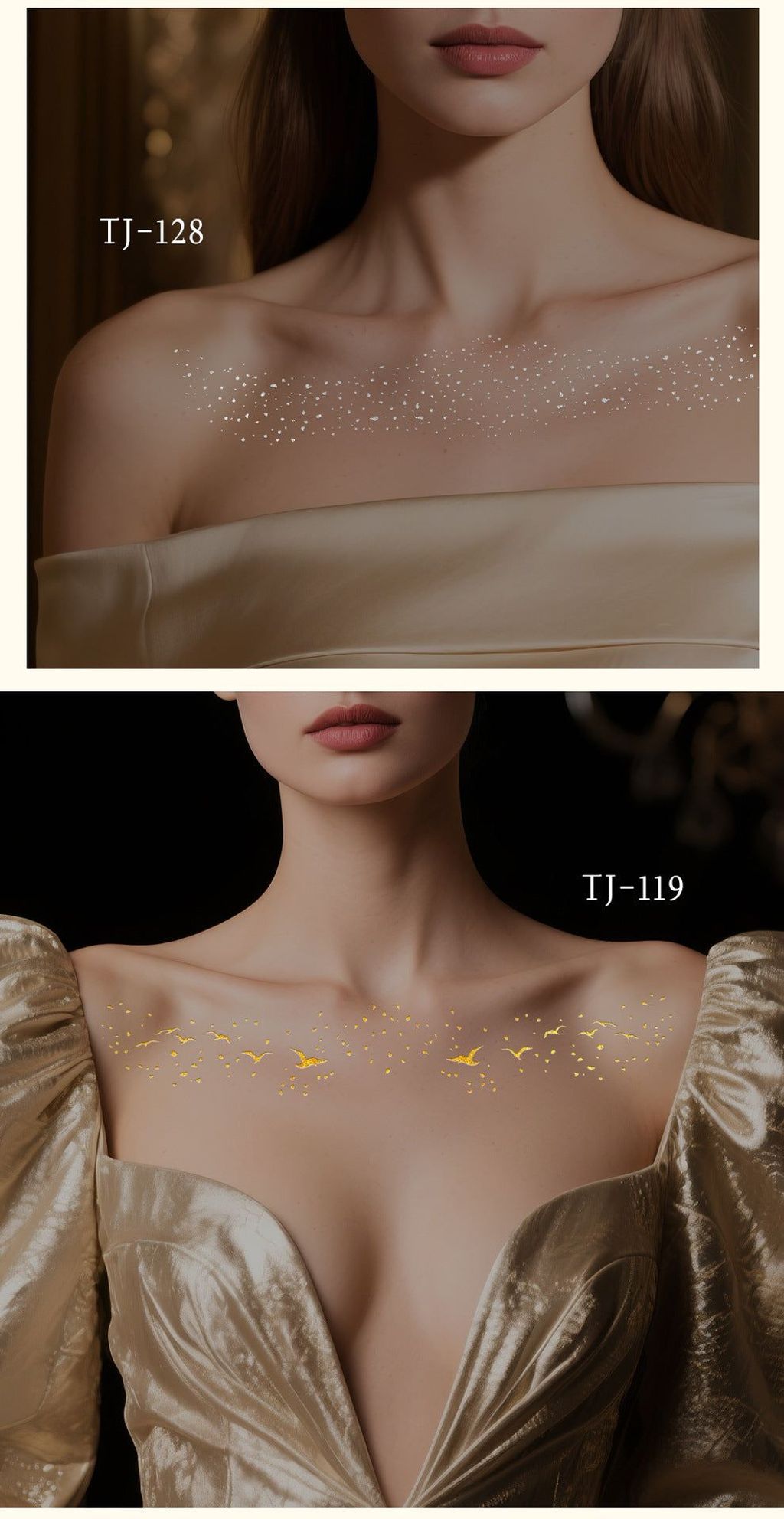 New Style Bronzing Silver Collarbone Freckles Stickers Waterproof Sweatproof European And American Collarbone Stickers Makeup Party Tattoo Fashion