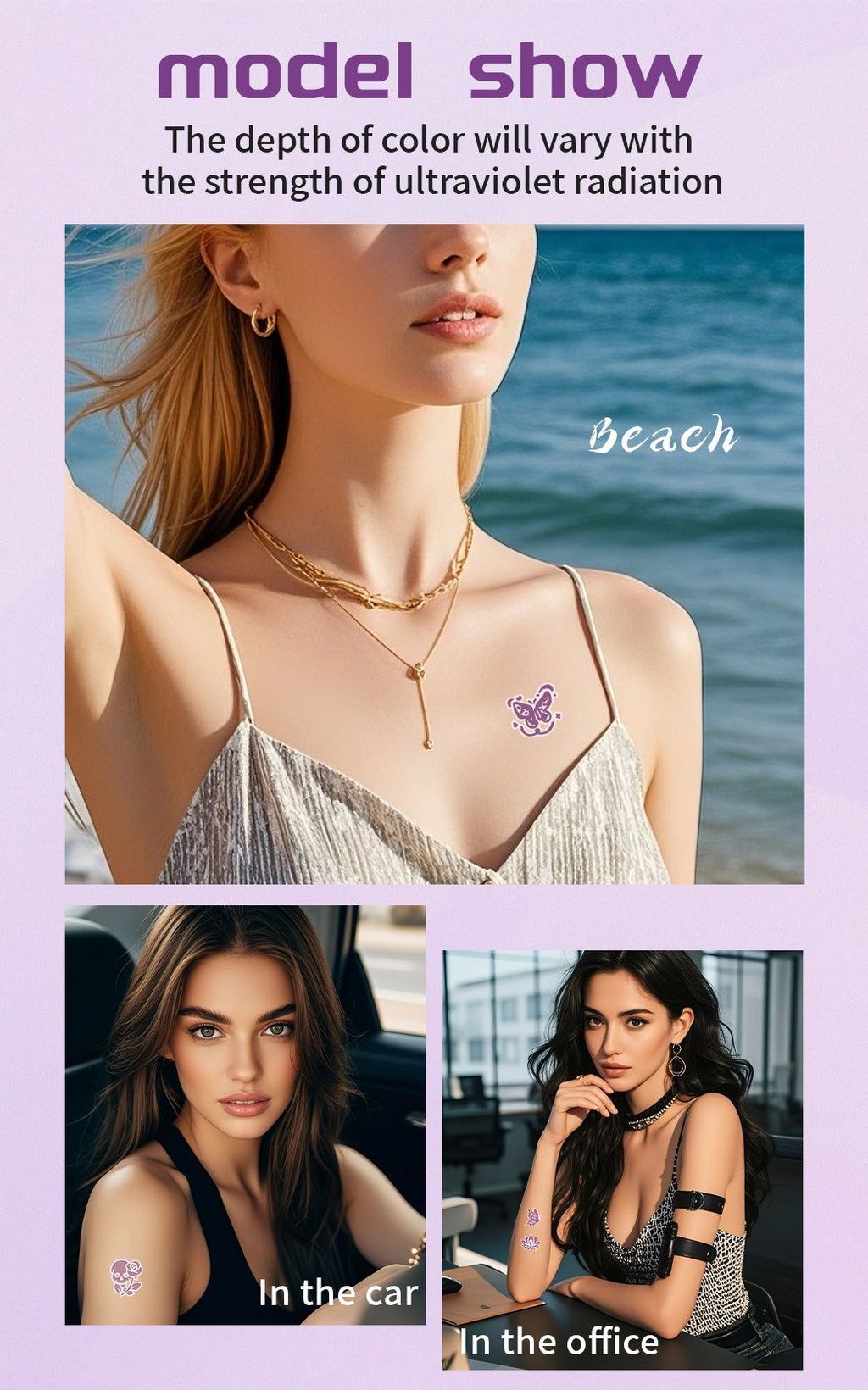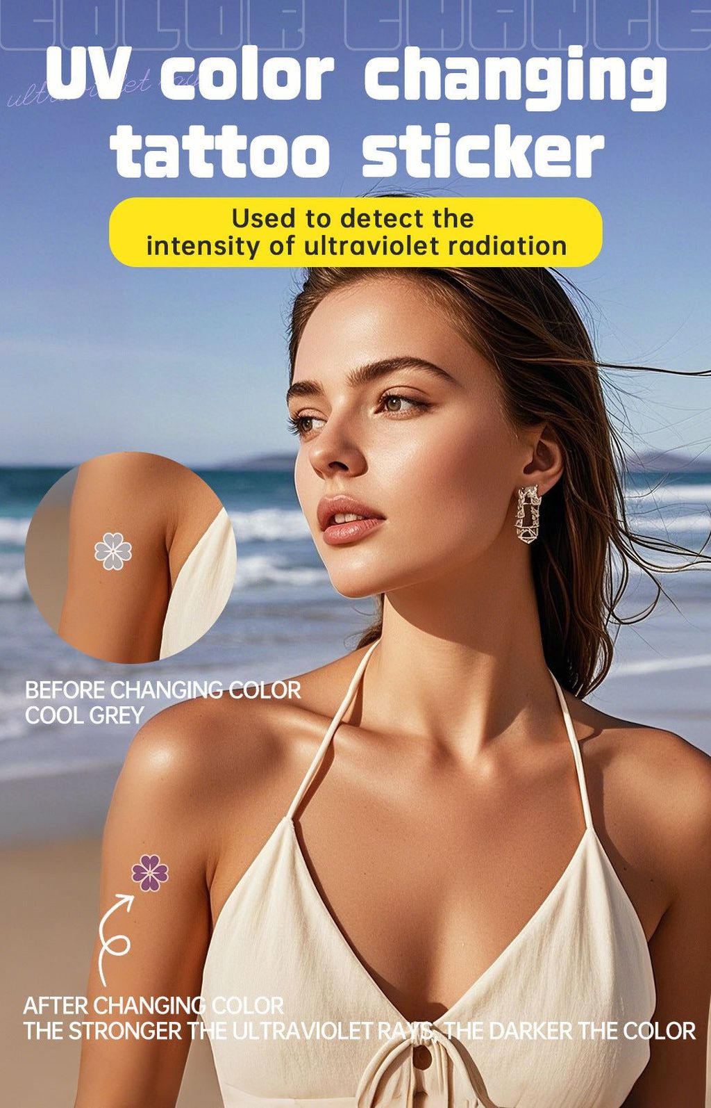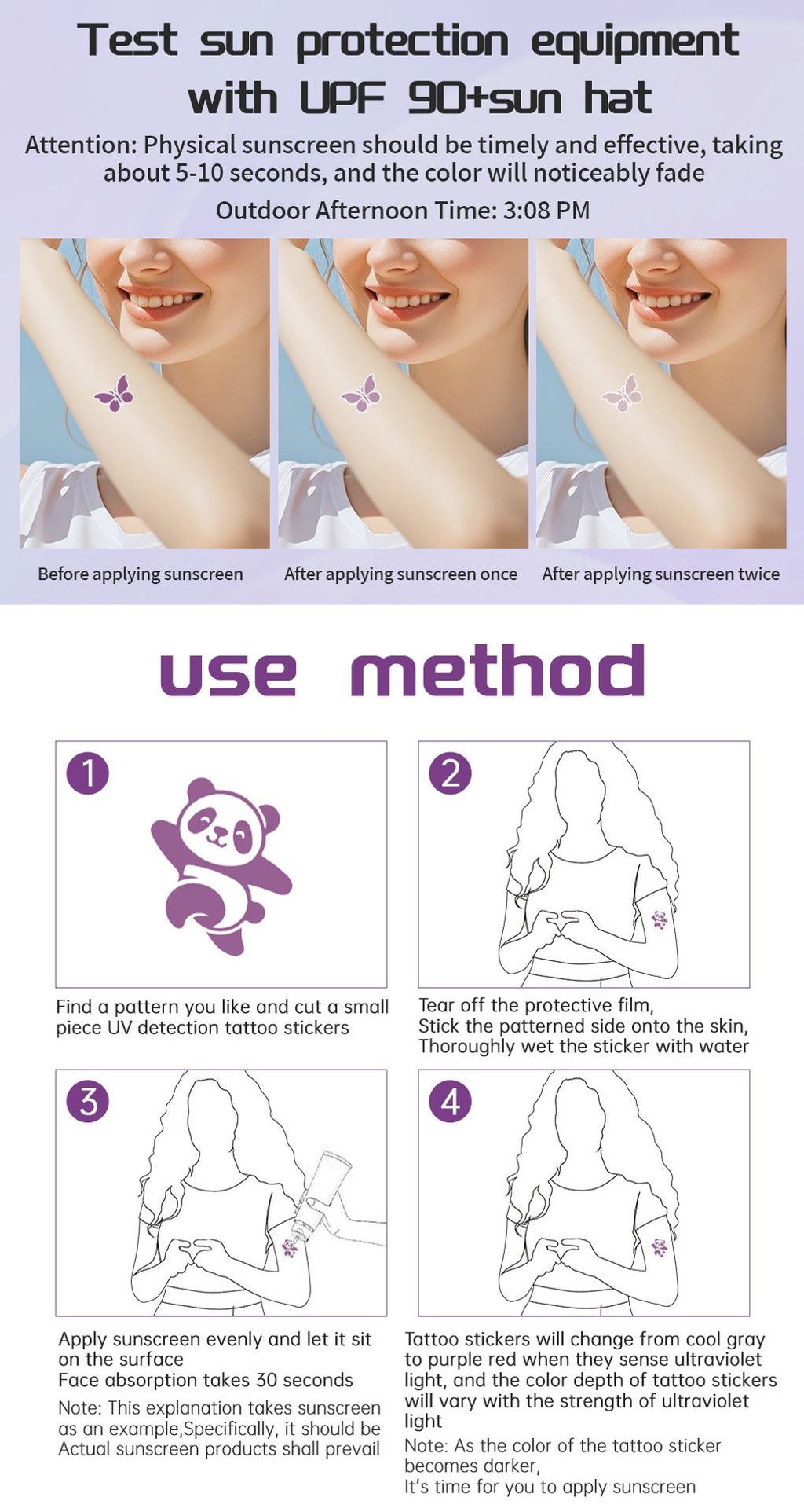 New UV UV Test Tattoo Sticker Summer Out Sunscreen Test Reapply Waterproof Sweat Sticker Fashion